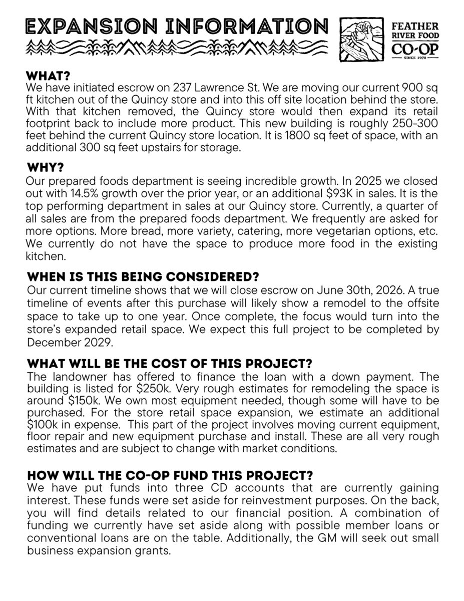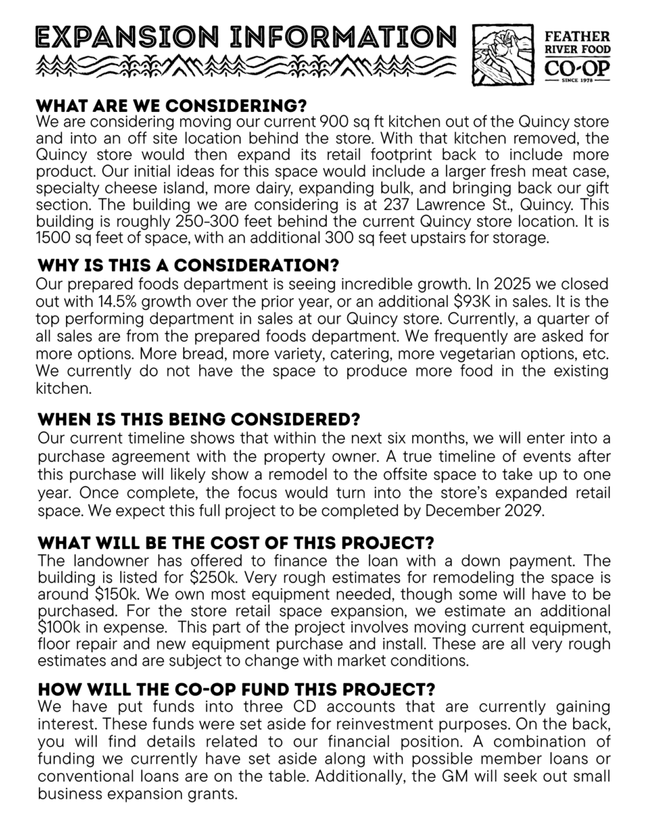 See the flyer below for details related to our goal of expanding prepared foods and retail offerings.